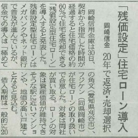 中日新聞に残価設定型住宅ローン導入について掲載されました